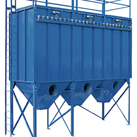 含塵氣體由進氣口進入灰斗或通過敞開法蘭口進入濾袋室,含塵氣體透過濾袋過濾為凈氣進入凈氣室,再經(jīng)凈氣室排氣口,由風(fēng)機排走。粉塵積附再